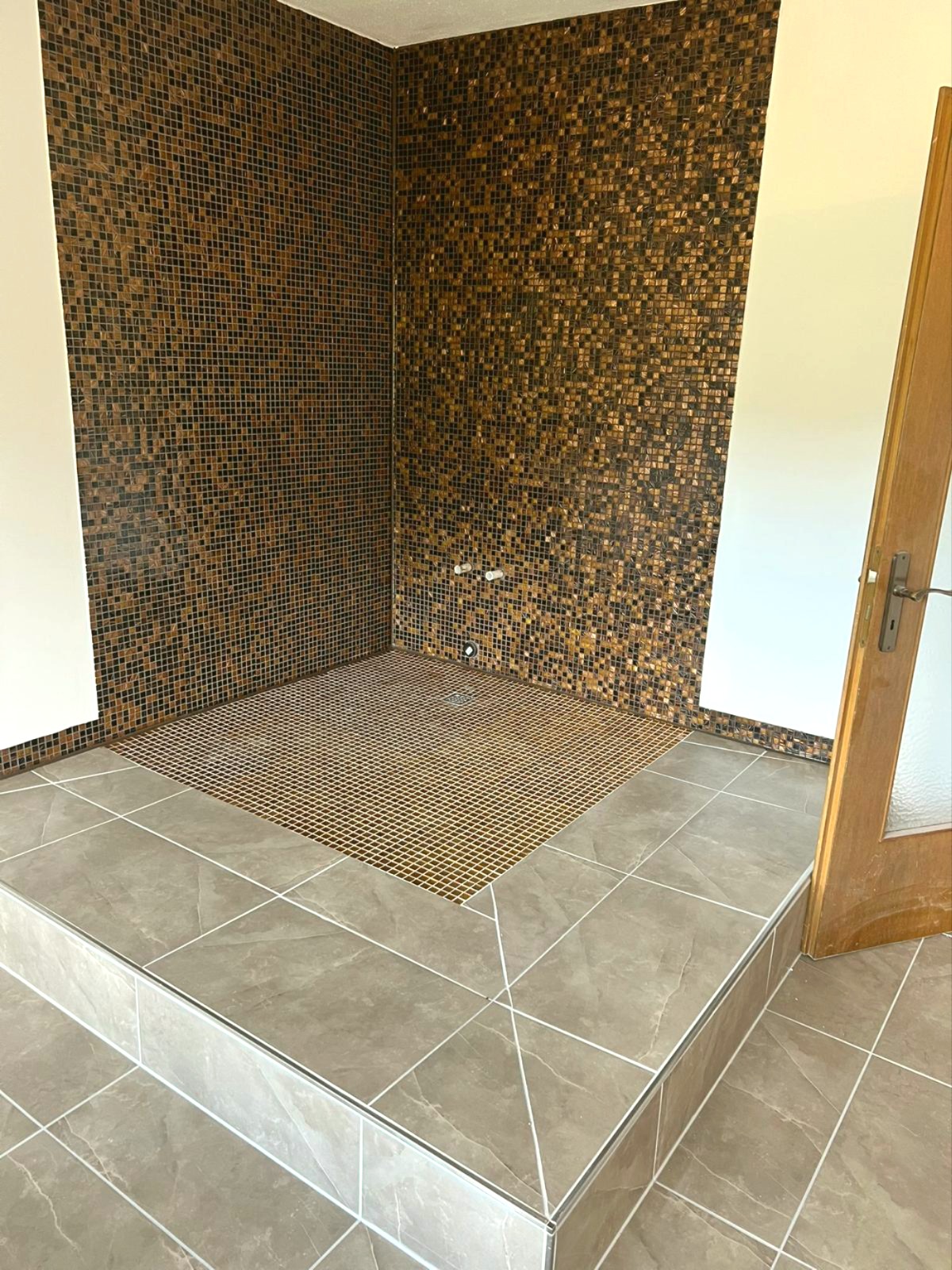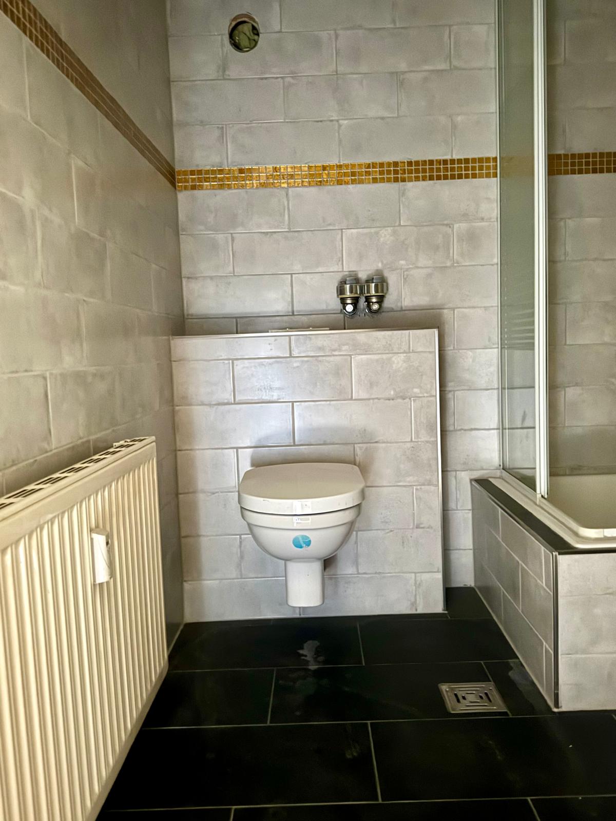 Ein separatem Badezimmer, eine vorbereitete Nische mit Fliesenspiegel für Ihre neue EBK ist schon vorhanden.